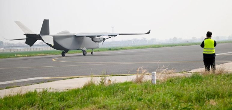 A Changying-8 cargo unmanned aerial vehicle (UAV) lands after a test flight at an airport in Zhengzhou, Central China”s Henan province, March 31, 2026. [Photo/Xinhua]